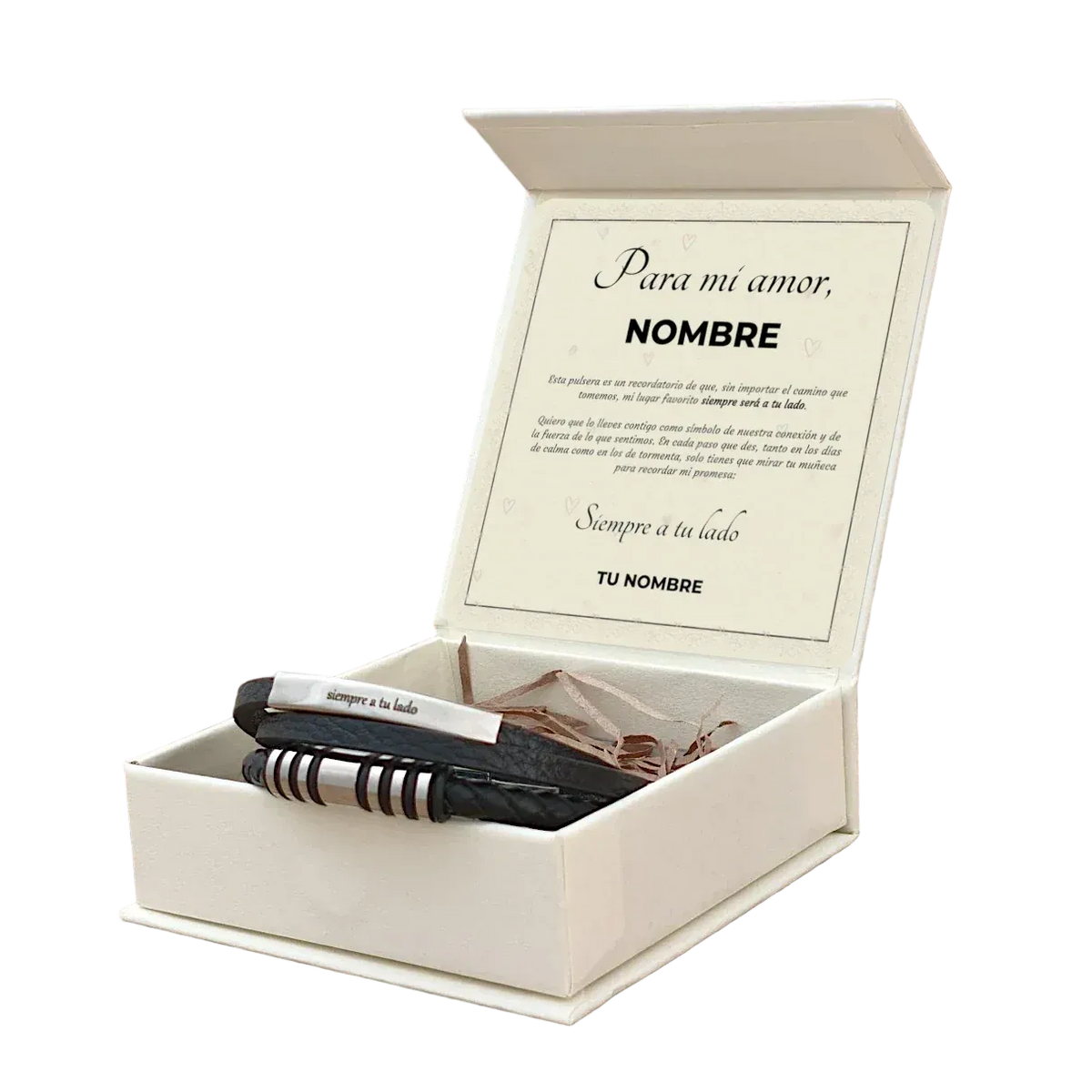 El regalo que él se merece. Sorpréndelo con una pulsera en Acero Inoxidable + Cuero Genuino de alta calidad. Y para que sea único y especial podrás personalizar una tarjeta con SU NOMBRE.